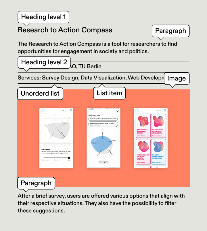 On our website, we ensured that those descriptions would benefit all users. For example, some could find the button that toggles the visibility of social media links on and off (represented by a heart symbol) confusing. By hovering it, the user can see the description “Show Social Media” which clarifies the role of the button (and is also the text that will be used by screen readers).